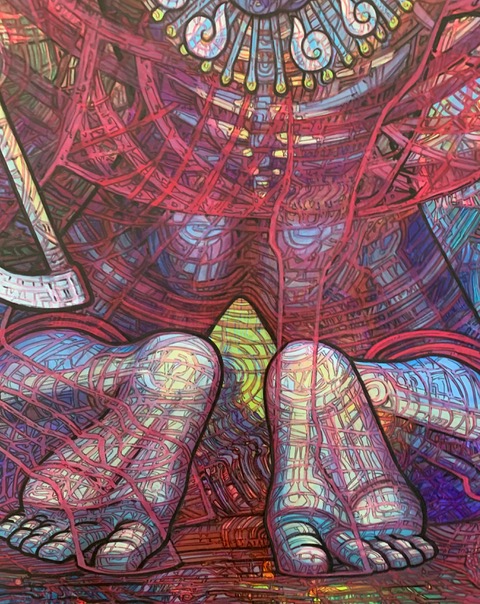 - La pintura: “IN LAK’ECH” “Yo soy tú, tú eres yo” “yo no existo sin ti” (maya), (acrílico sobre tela 2.50 x 1.50 mts)