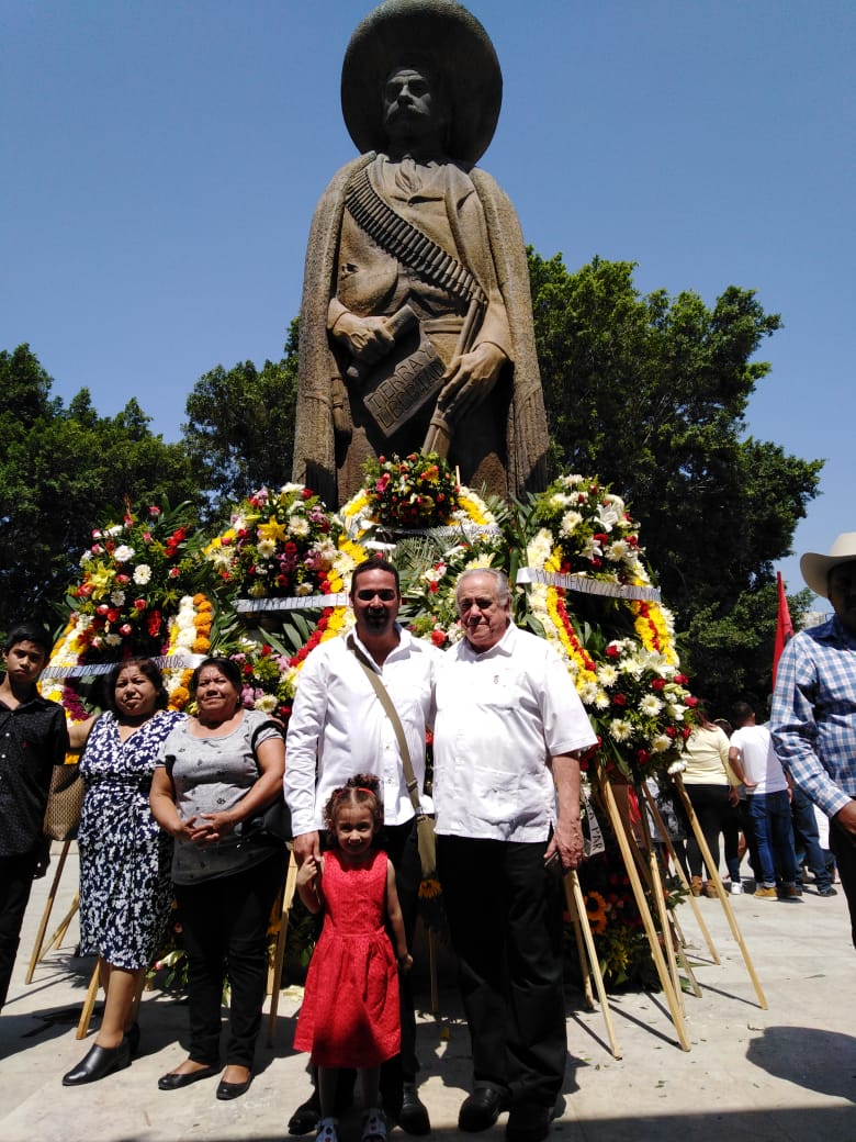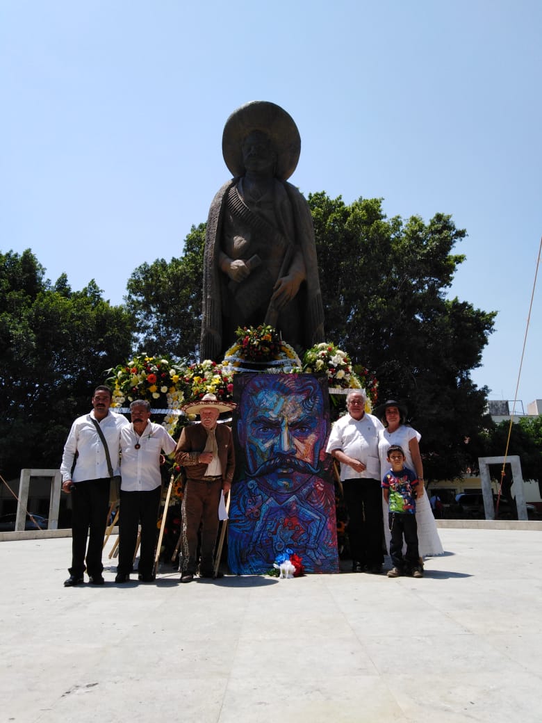 - Entregando la obra “Zapata” a la Familia Zapata, el nieto Manuel Zapata, el Maestro Carlos Terrés, y el bisnieto Ulises Zapata.